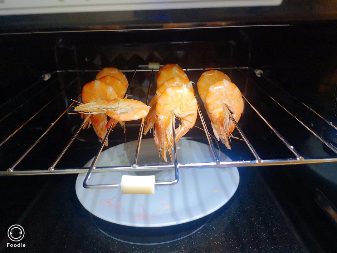 最好选个头不太大的虾,不然尾巴干了,身体还没烤透😭