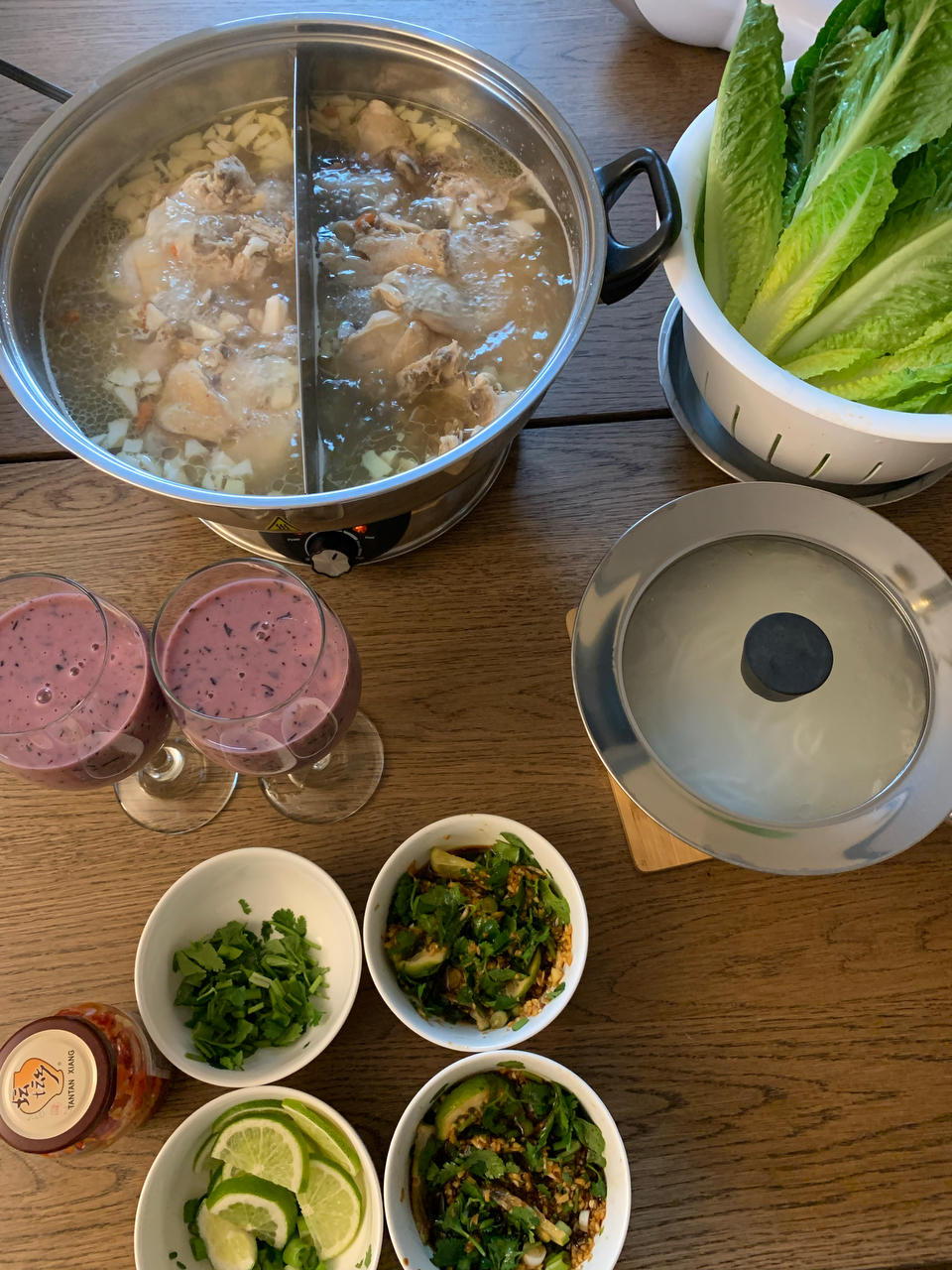 Ivyswius 做过 海南椰子鸡 椰子鸡火锅整鸡去掉鸡胸肉的部分,四盒330ml的coconut water, Whole Foods 买的椰子肉,家里只剩枸杞了。蘸料用另一个方子做的,很好吃!还煮了米线,味道很好!剩下的鸡汤第二顿还可以再煮一次米线,加点红油辣椒就是一碗鸡汤米线,好吃! 2022-05-16