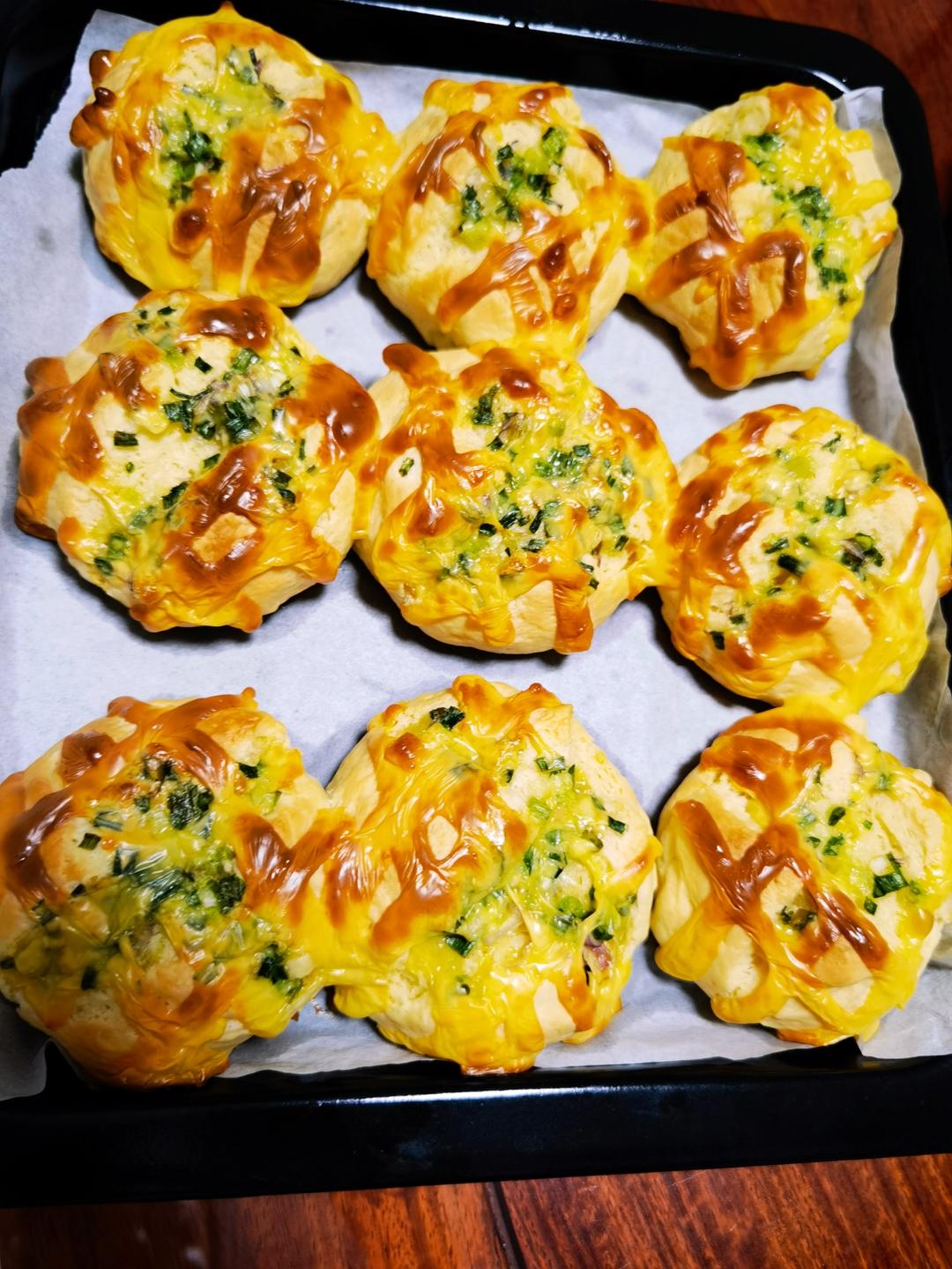 没有芝士粉放了芝士片,好吃,最爱葱香面包