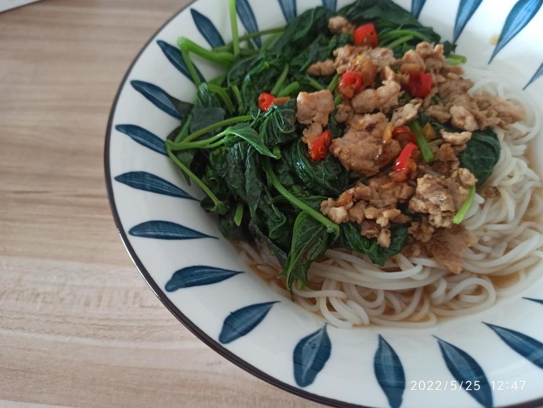 拌江西米粉,重点是番薯叶是自己种的