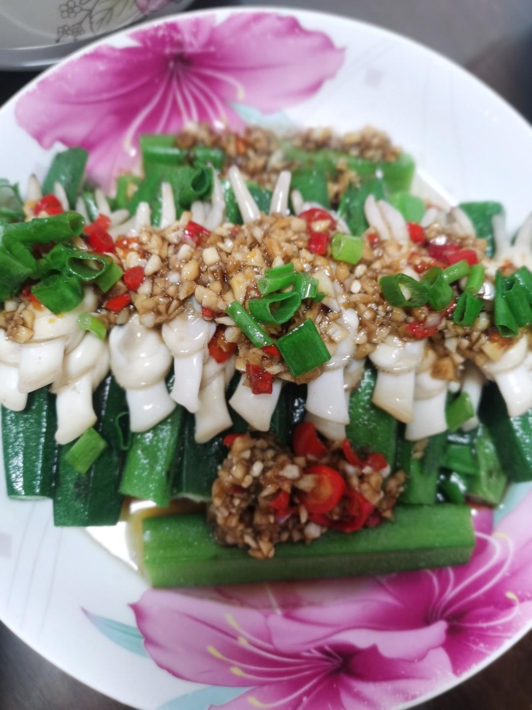 蒜蓉蛏秋葵,苋菜炒米粉,豆丸子汤