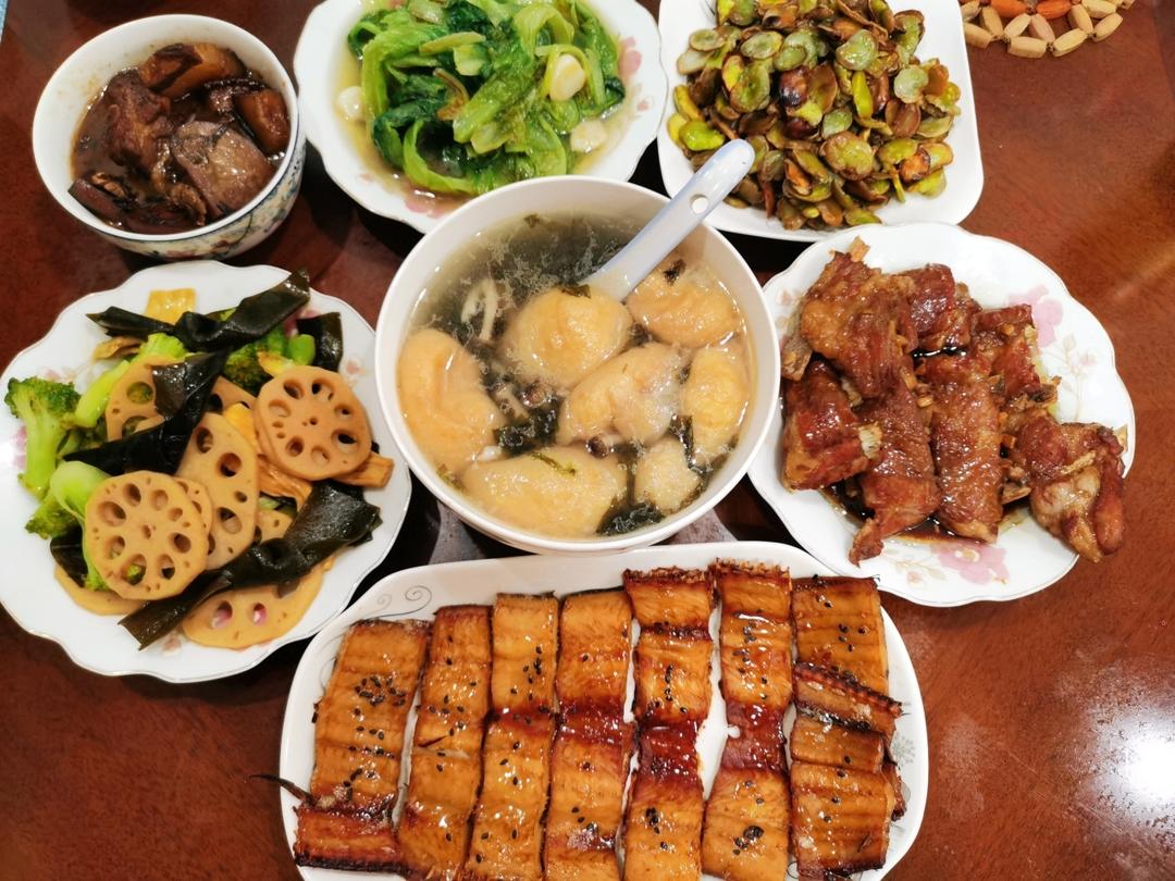 晚上真的大餐了,烤肋排和烤鳗鱼,都是第一次,在有限的调味料下很成功😜