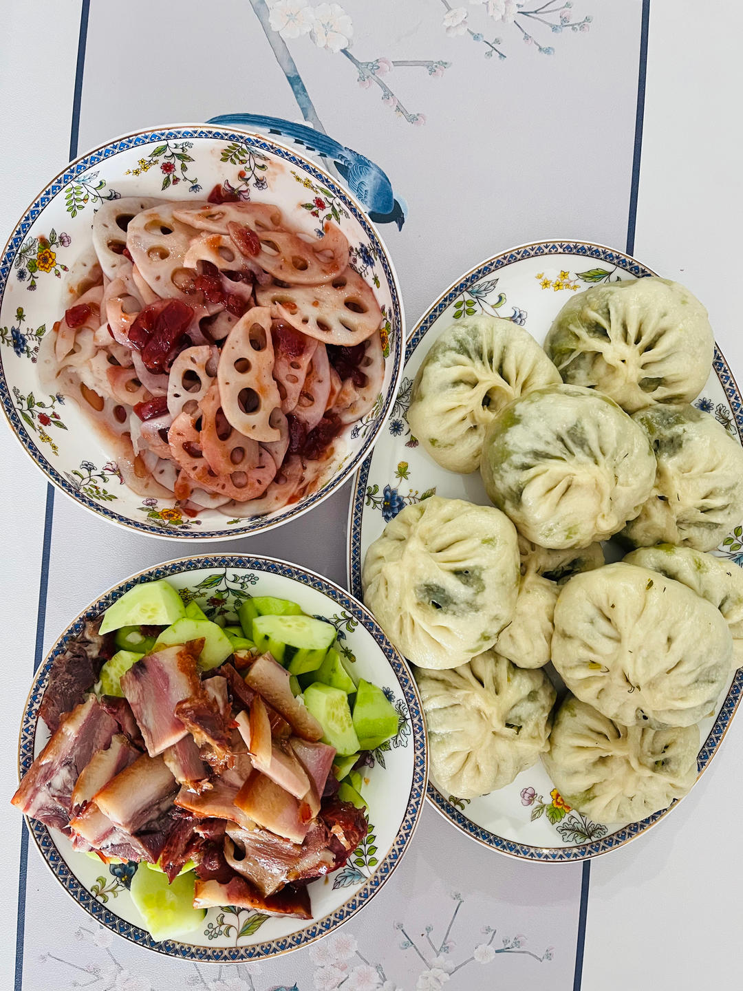 茴香鸡蛋馅儿的包子,山楂糕拌藕,黄瓜拌猪头肉