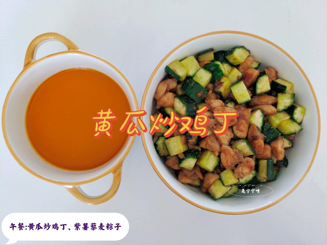 是宁宁呀 做过 减脂 减脂午餐:黄瓜炒鸡丁蛋白质:鸡胸肉膳食纤维:黄瓜碳水化合物:粽子优质脂肪:花生油 鸡胸肉切丁,加1勺生抽、1勺料酒、1勺玉米淀粉、少许盐、少许零卡糖、少许胡椒粉,抓匀腌制15分钟。蒜切末。黄瓜切丁锅中倒油,油热放蒜末爆香,放鸡胸肉翻炒至表面微焦,倒入黄瓜丁,加半勺蚝油、少许胡椒粉,翻炒均匀,出锅即可 #减脂# 2022-06-01