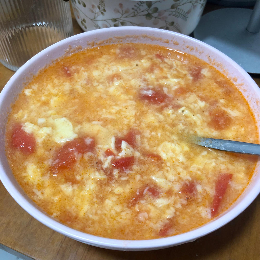 西红柿面疙瘩汤~样子虽然埋汰了些,但是真好喝,还饱腹!