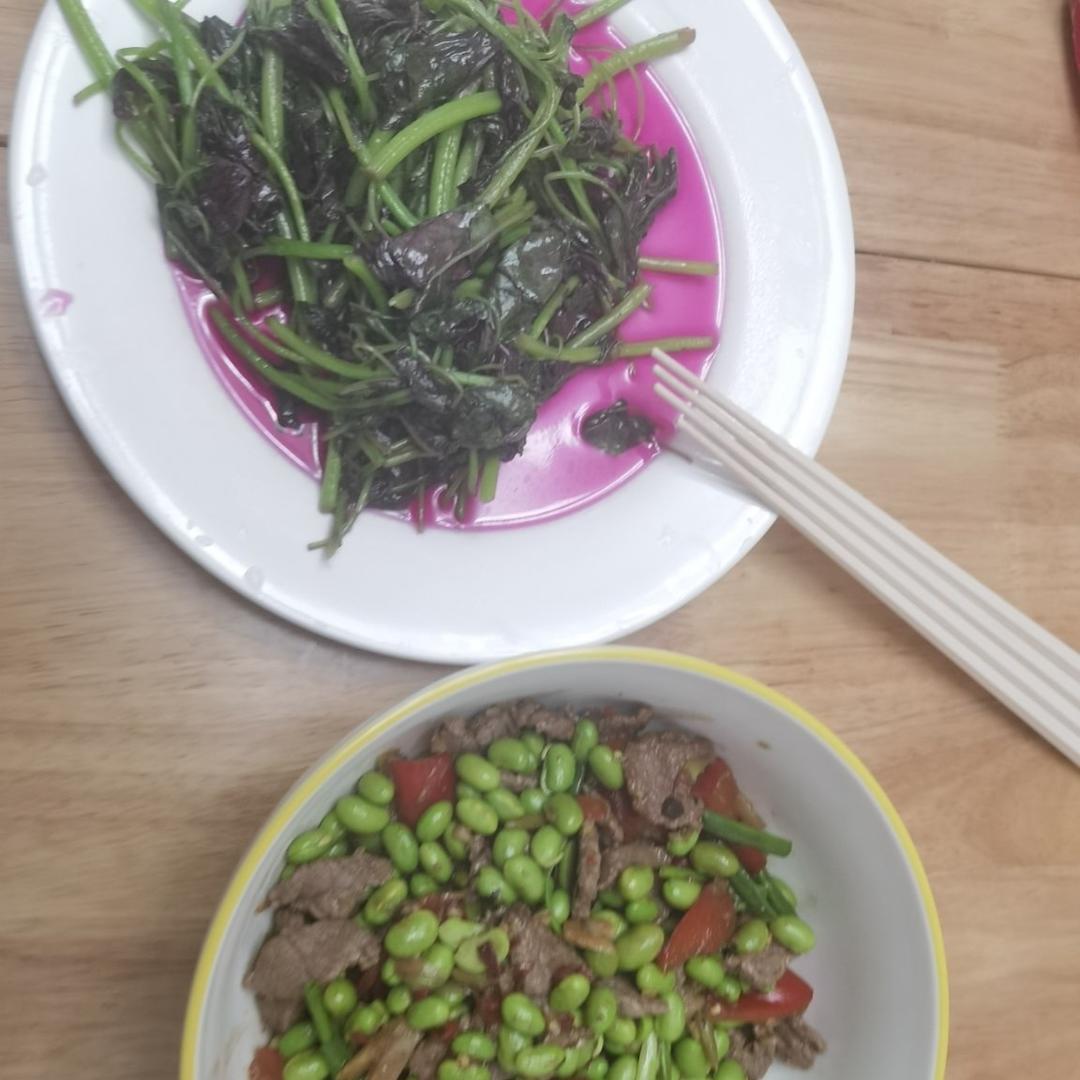 清炒苋菜,毛豆牛肉