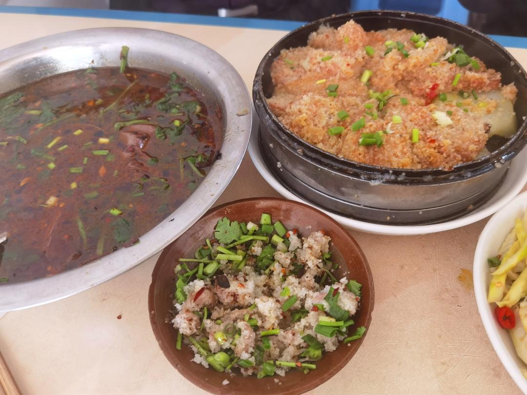某小镇上吃的酸肥肠 酸粉蒸 酸辣血旺 泡椒笋