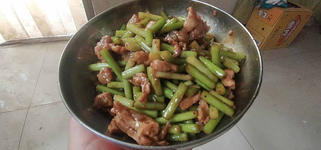 蒜苔炒肉末,三碗米饭都不够吃