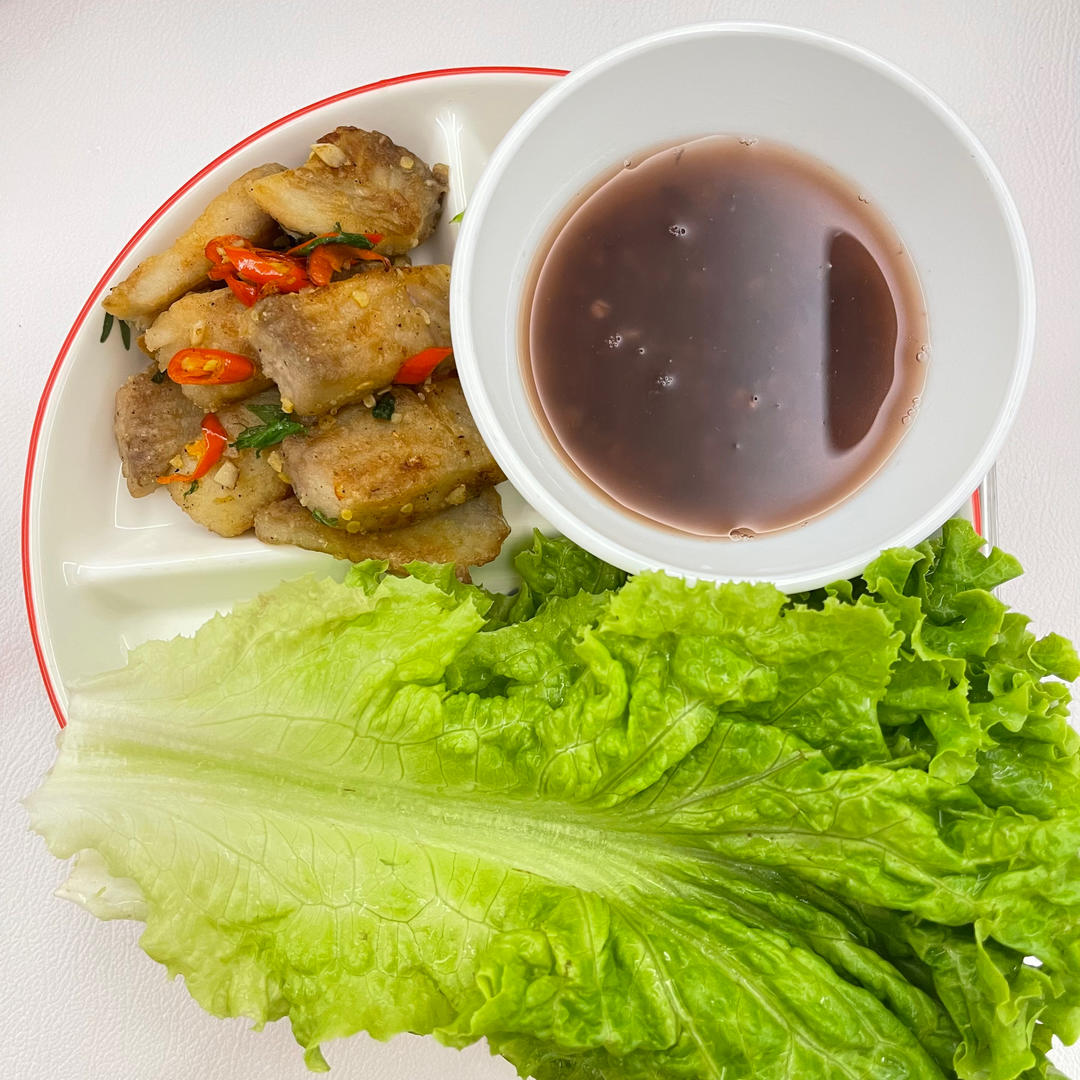 椒盐鲷鱼片两吃,蘸点大酱包在菜里也很好吃。