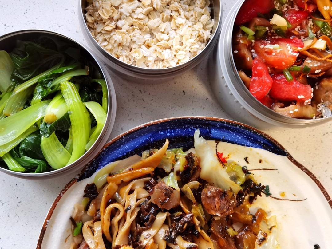 卖手艺的筱兜酱 做过 早餐•2022年6月24日 梅干菜牛肉凉面 酱油拌青菜 清水泡燕麦 捞汁菌菇虾仁 把锻炼分早晚两次 吃和练 都让我快乐#早餐•2022年6月24日# #一人食# 2022-06-24