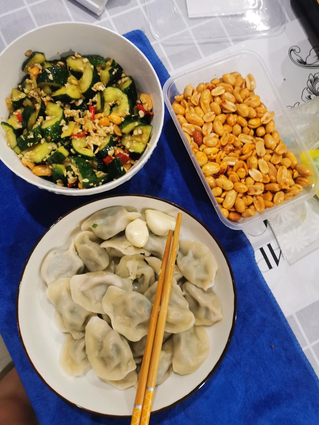 简单吃点,饺子🥟,凉拌黄瓜,酒鬼花生🥜