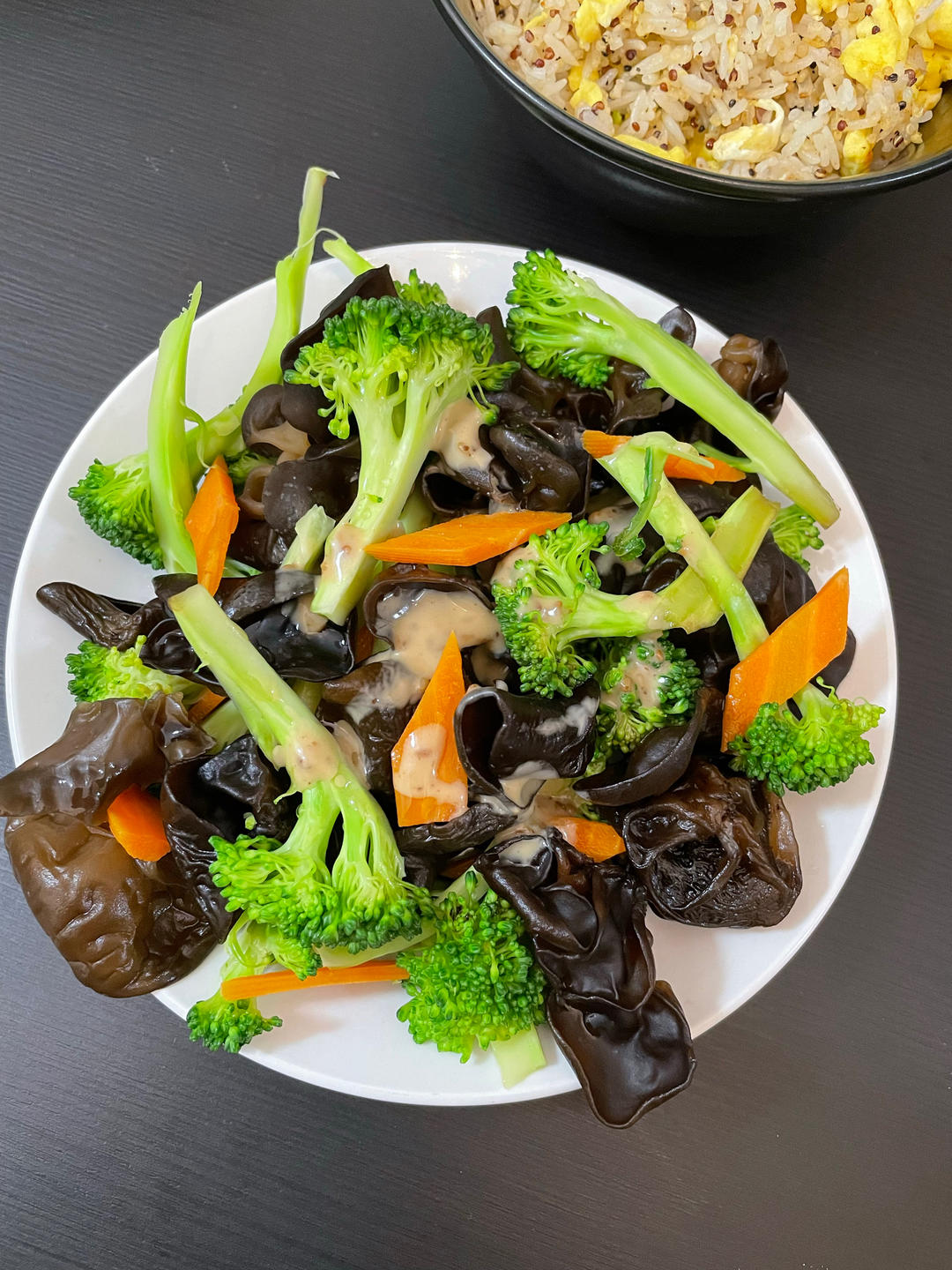 🥦凉拌西兰花木耳,爆炒羊肉,蛋炒饭