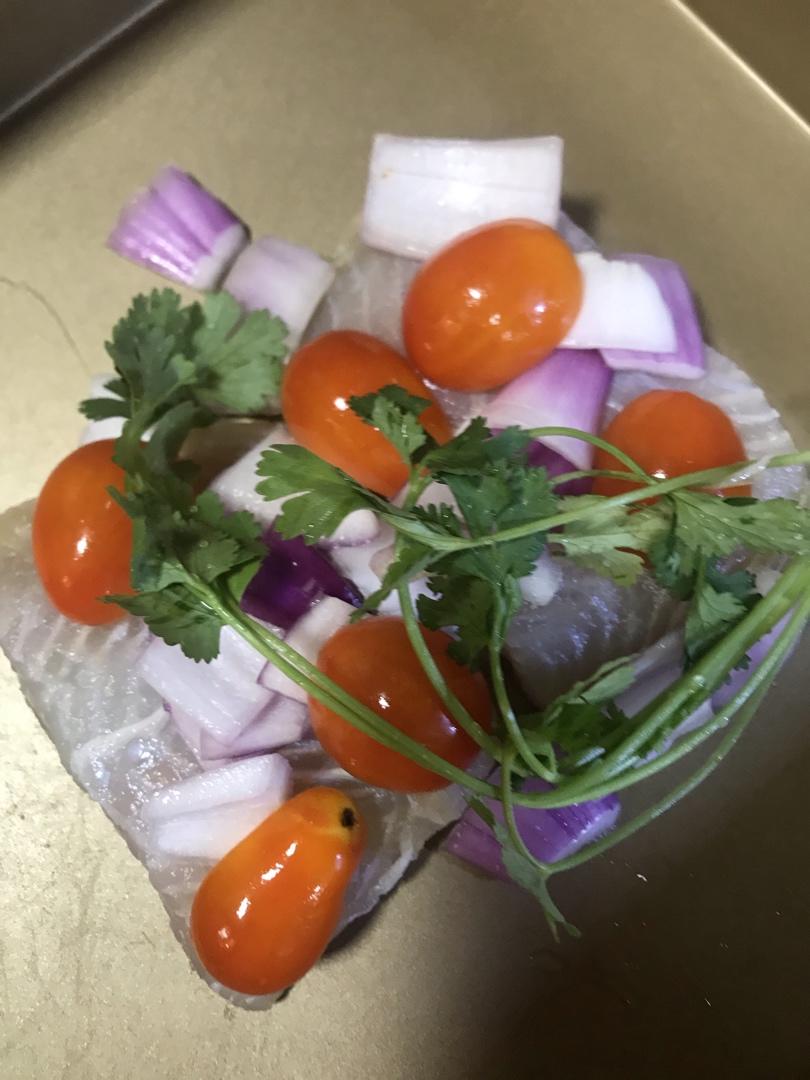 小番茄烤巴沙鱼 把腌好的鱼直接放烤盘上烤,家里没有锡箔纸,烤出来也挺好吃的哦。