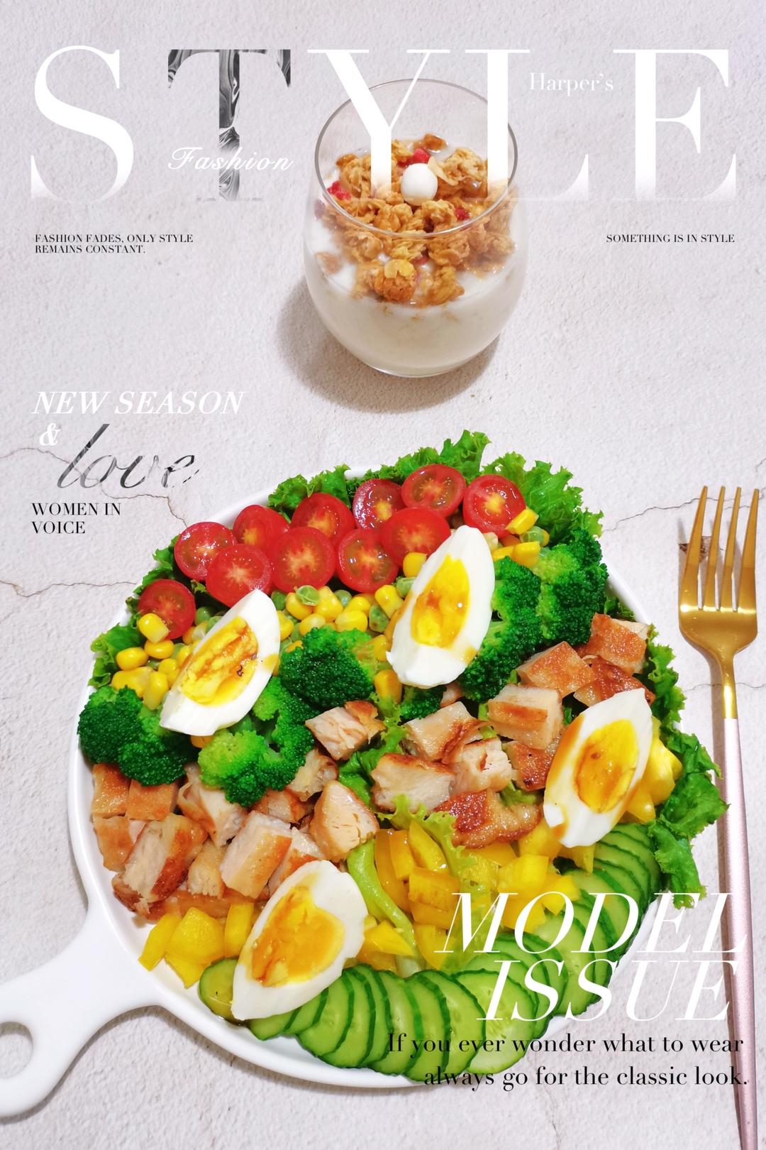蔬菜鸡排沙拉🥗 燕麦脆酸奶杯