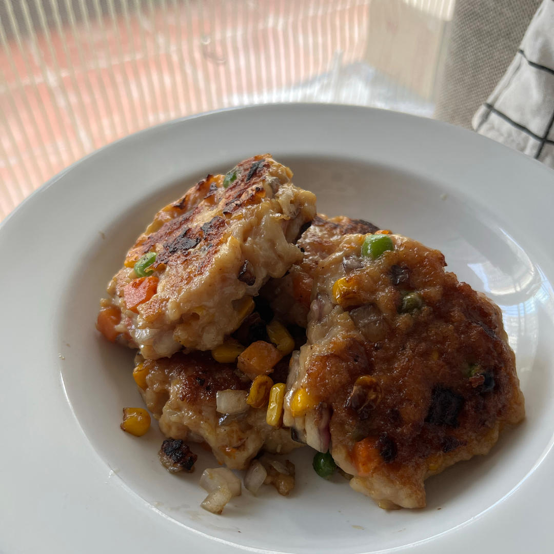 balckboo 做过 我要向全世界安利这个减脂餐!!! #晚餐•2022年6月26日# 上次做鸡胸肉饼很难吃,因为肉熟了但蔬菜粒还是生生的味道,这次用小火盖盖子焖煎,成功了!加了洋葱提味很好吃! 2022-06-26