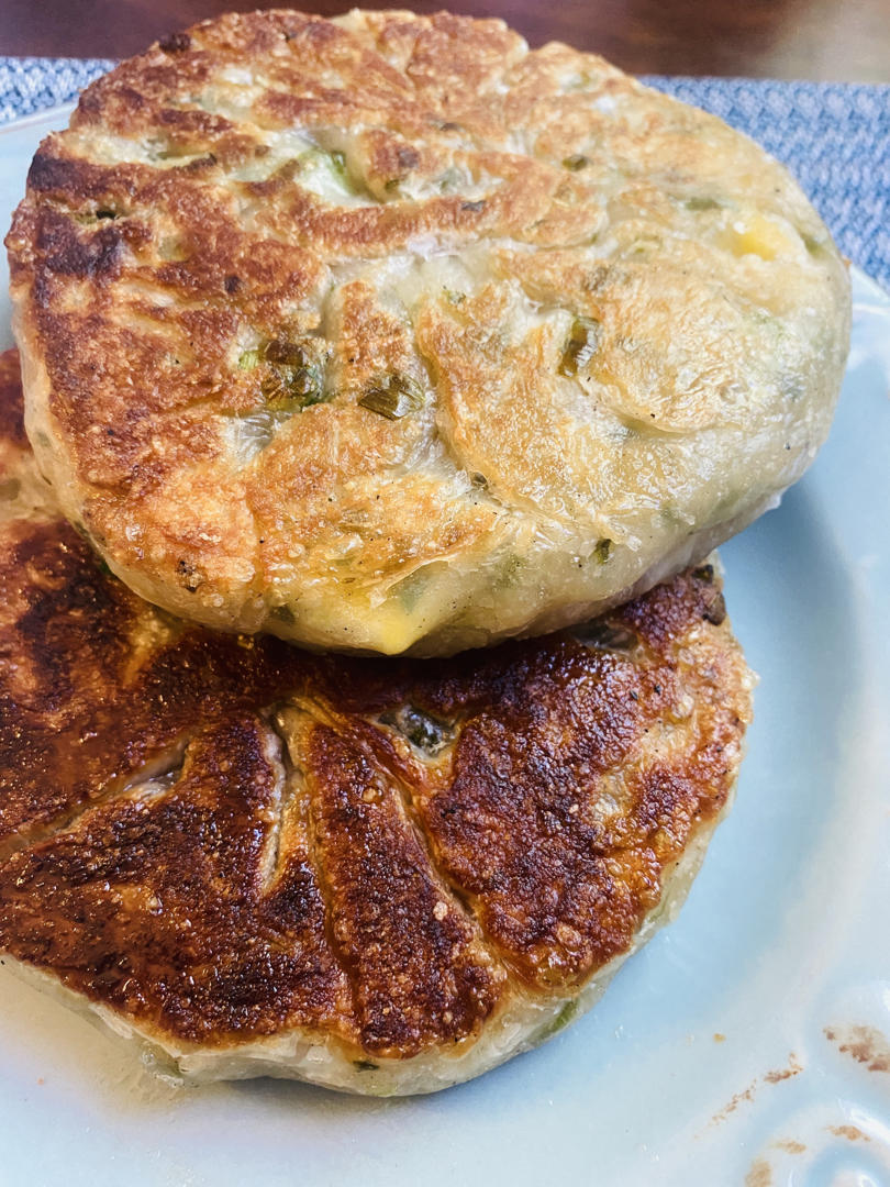 直接用冷冻葱油饼做的 10分钟出锅 而且外皮层层叠叠松脆 完全和小时候门口的早餐韭菜盒子一样