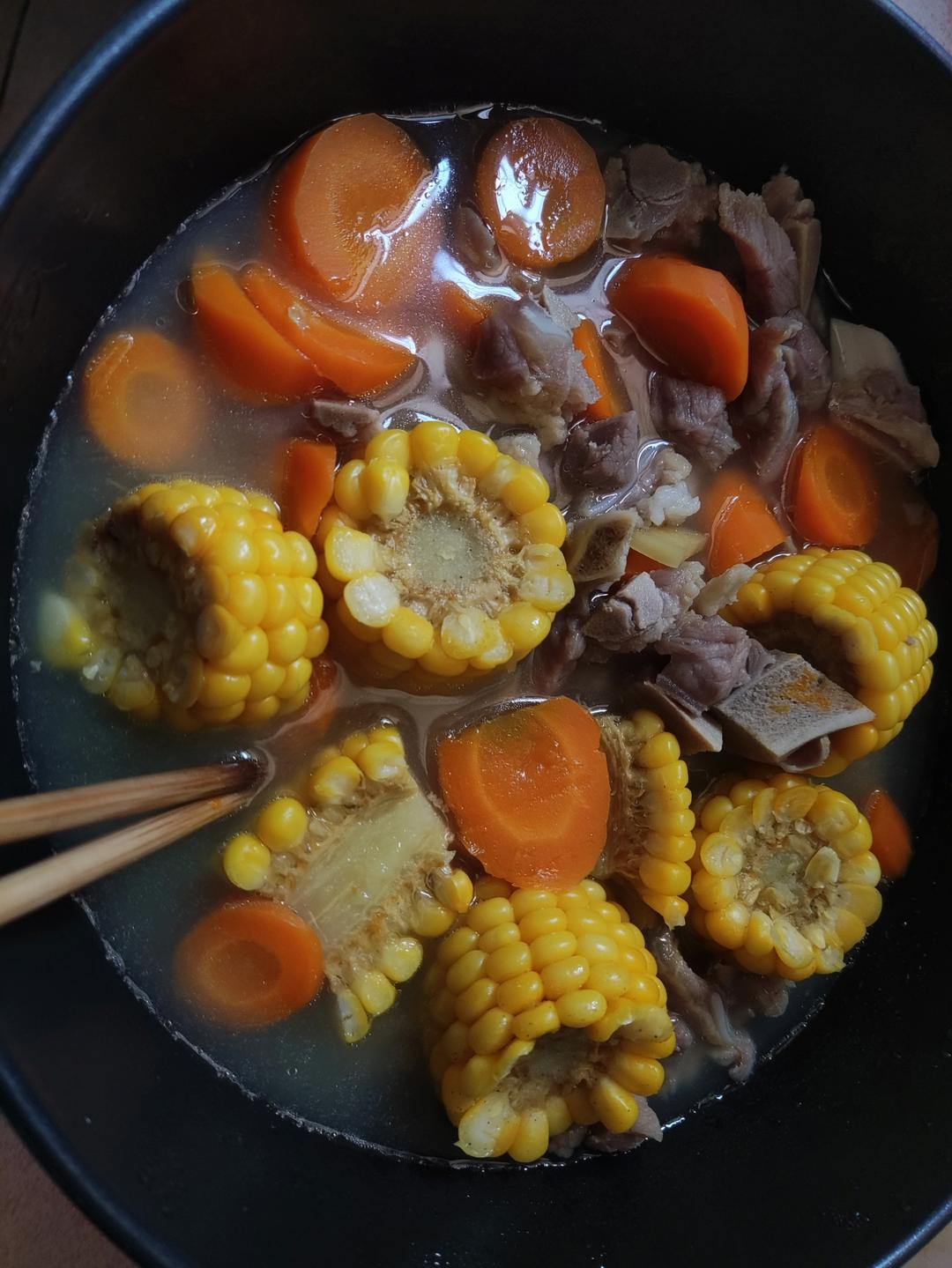 骁佳豪 做过 玉米排骨汤 焯水排骨 姜后面忘记挑掉,有一股姜味的汤,哎我用冷水冲肉沫,建议用温热水,冷热会导致排骨肉变硬,虽然我没感觉说是建议焯水后排骨用一点点油炒一下更香加水,盐,胡椒,和萝卜玉米煮30分钟小火,over 2022-06-29