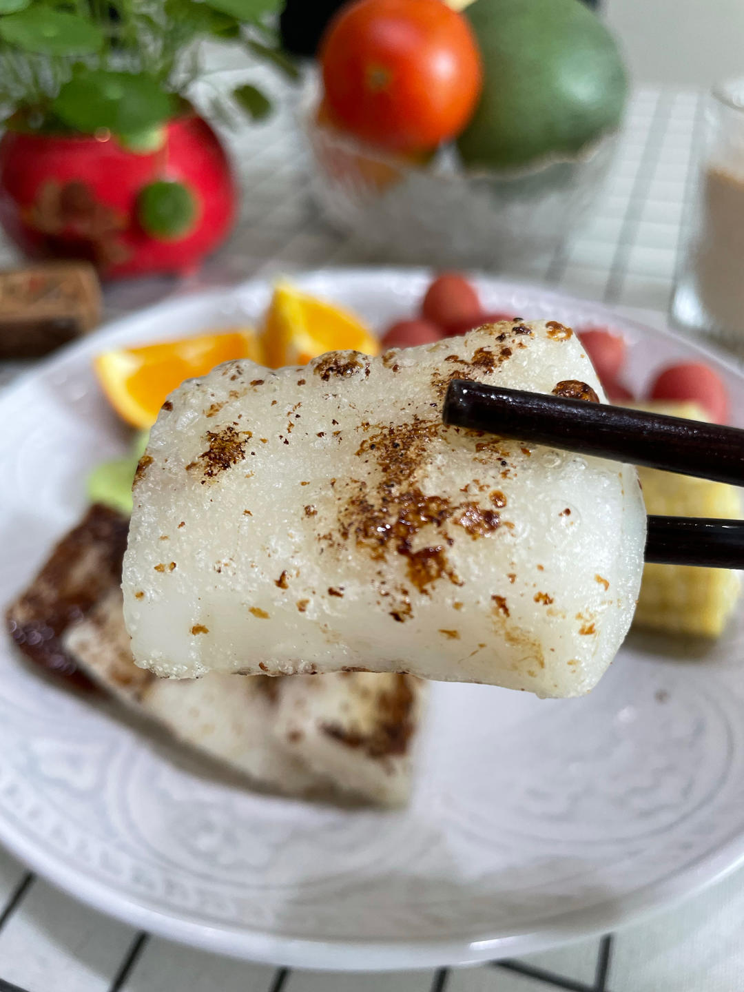 B妈小厨 做过 煎年糕 20220701 星期五 农历六月初三一年过半,仲夏来临愿你的世界阳光和煦,清风醉人七月,安好!早餐烤红糖年糕蒸玉米🌽橙子🍊小番茄🍅黄瓜🥒新鲜荔枝鸡蛋🥚鲜牛奶🥛#早餐•2022年7月1日# #早餐早餐# 2022-07-01