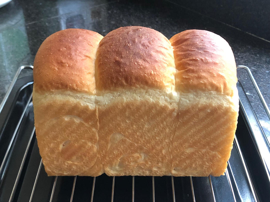 2、不回温撕小块+糖,(下垫冰袋)面包机7,10分钟后加盐+黄油,一个流程30分钟洞基光滑,但面团温30度,478克。一发30分钟(按一下有些回弹的)二发45分钟