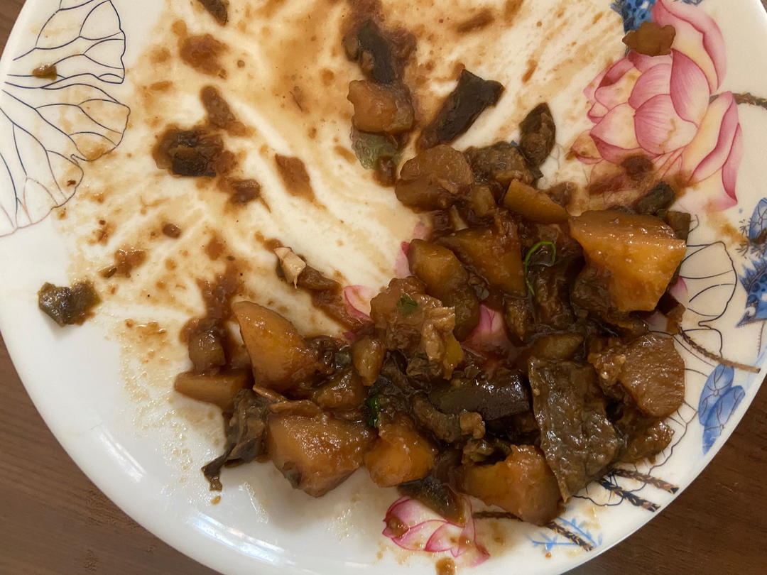 英皓的SuperMum 做过 午餐•2022年7月17日 毛葱十三香爆锅 土豆手撕茄子一起下锅炒 放一勺豆瓣酱 老抽生抽盐 炒一阵 下水不用没过食材 软烂怼碎后放入蒜香菜炒一下 味道绝了#午餐•2022年7月17日# 2022-07-17