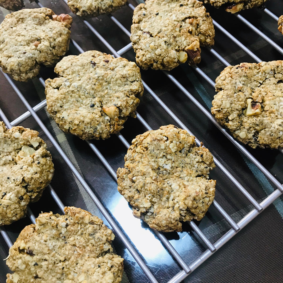 家有两宝430 做过 🔥酥掉渣的燕麦饼干🍪 做了1.5倍 油只放了35g 放了黑芝麻粉 核桃碎减量 因为太多的话 按扁的时候会散 我额外加了2g苏打 口感更酥脆好吃 下次白糖换用蜂蜜 用椰子油试试看 2022-07-20