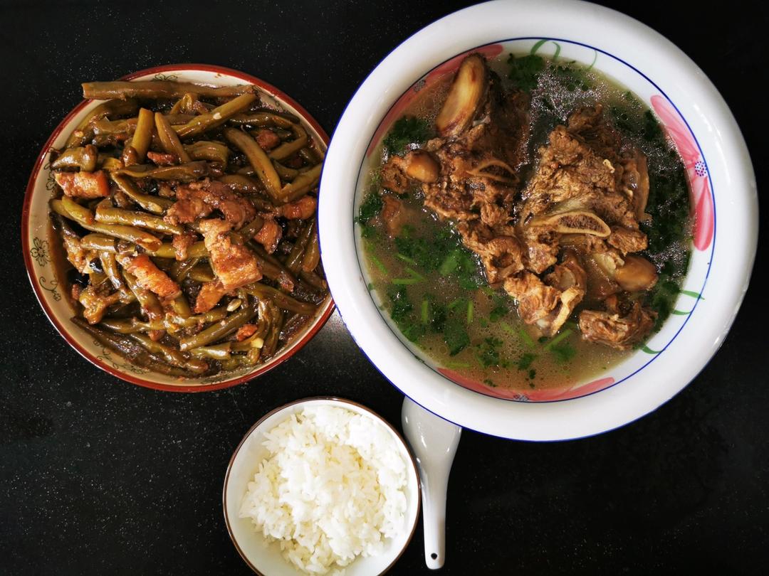 牛脊骨汤 、五花肉炖豆角茄子