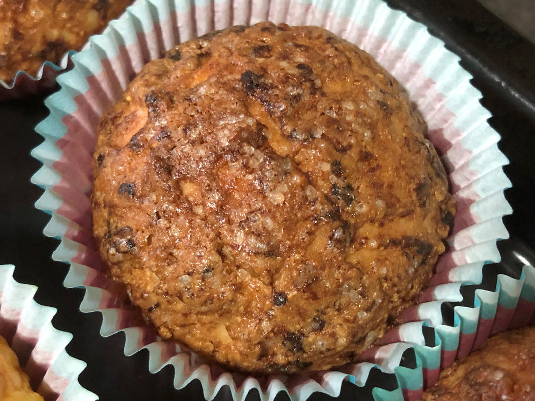 酥皮部分按配方做的,滚了点砂糖,不错,很香,咖啡味浓