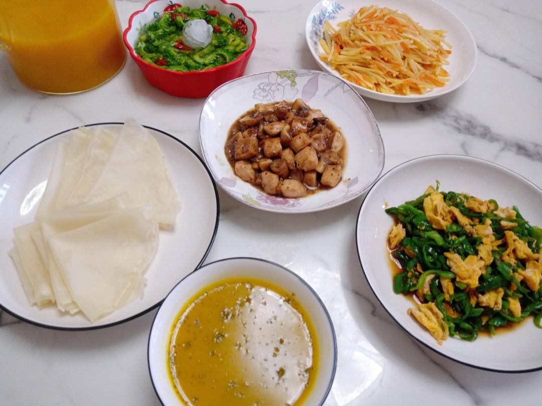 今日早餐打卡南瓜小米胡萝卜汁泡奇亚籽,配上卷饼!