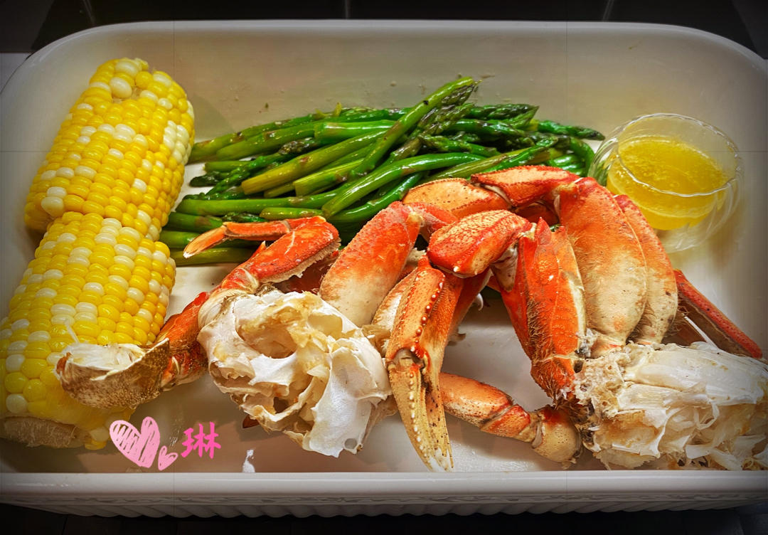 琳SanDiego 做过 晚餐•2022年8月4日 珍宝蟹爪是COSTCO买的急冻生鲜,instant pot高压蒸4分钟放气拿出,蘸蒜蓉黄油。配菜蚝油芦笋,主食是煮甜玉米。不过吃完黄油蟹肉己经够饱,主食就省掉了。#晚餐•2022年8月4日# #健康吃健康瘦# 2022-08-05