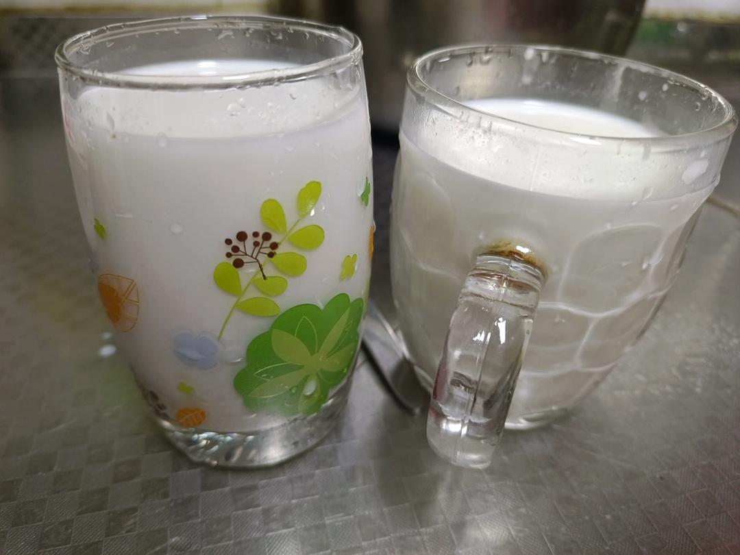 自榨椰浆+几大勺酒糟+3-4cm高牛奶。