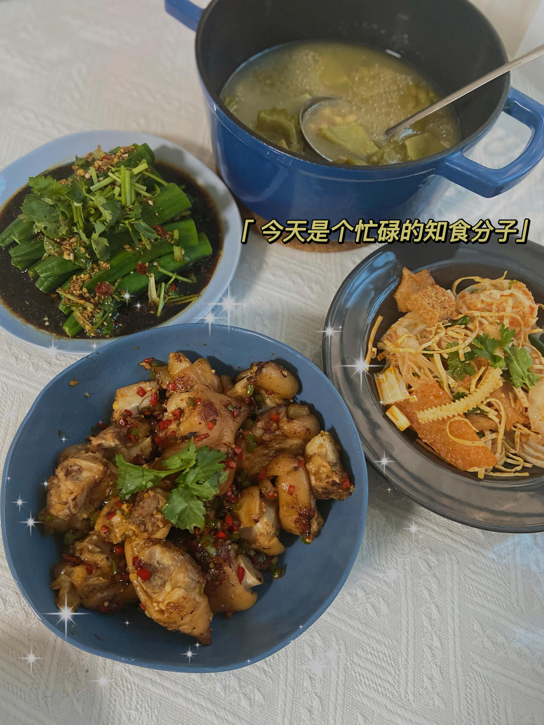 Sharon冬 做过 晚餐•2022年8月14日 #晚餐•2022年8月14日# 凉拌秋葵、猪蹄两吃(跟黄豆炖汤后捞出猪蹄,软烂的猪蹄椒盐炒,黄豆汤水+苦瓜煮成汤)、路边摊买的凉菜(外面的东西真的试一次就好🫢) 2022-08-14