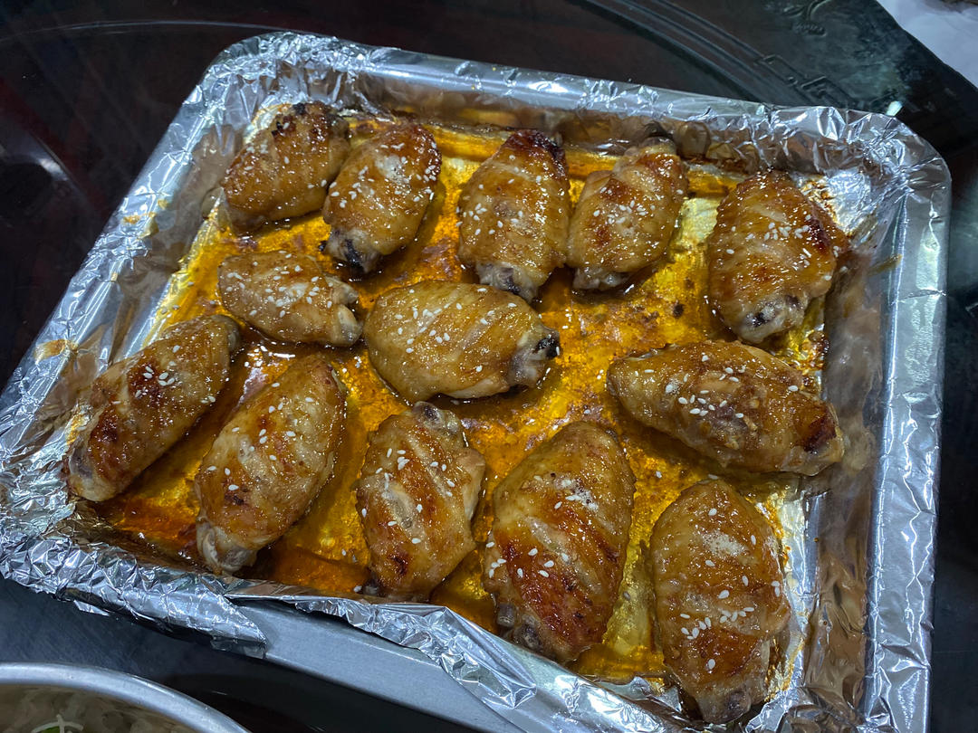 lylahuang93 做过 外香里嫩一口爆汁蒜蓉蜜汁烤鸡翅 鸡翅刚从市场买回来,还是冰的,所以烤出了很多水份。跟着楼主腌味,味道不错。家里烤箱200度烤20分钟,再涂蜂蜜烤5分钟,全熟,皮微脆。下次一定要提前3-4小时腌制,放烤箱前吸干水,烤15分钟后涂蜂蜜,再烤10分钟出炉。#晚餐•2022年8月17日# 2022-08-17