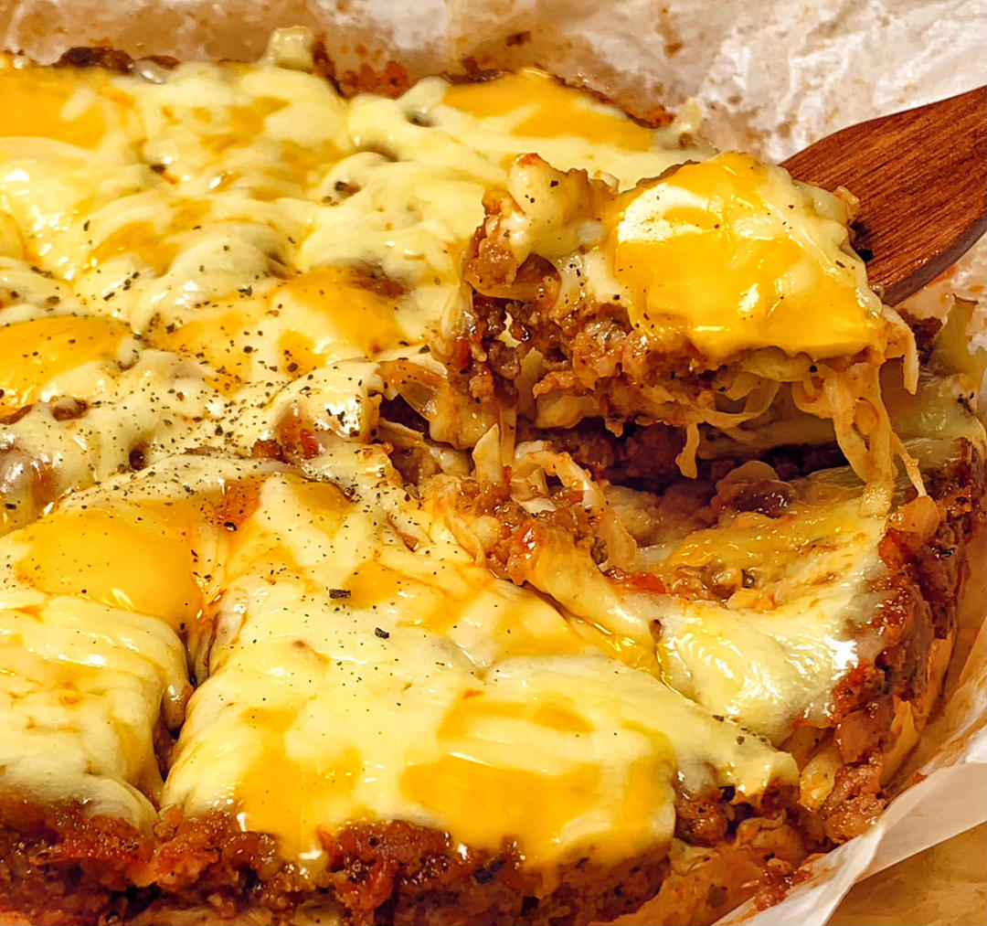 阿三的甜品烘焙日常 做过 番茄肉酱乳酪披萨(非面皮低碳水版本 自制番茄酱) #早餐•2022年8月19日# #🍕披萨# 不用揉面的披萨 低碳高蛋白健康还好吃 早餐来两块 活力满足一整天🥳💕 2022-08-19