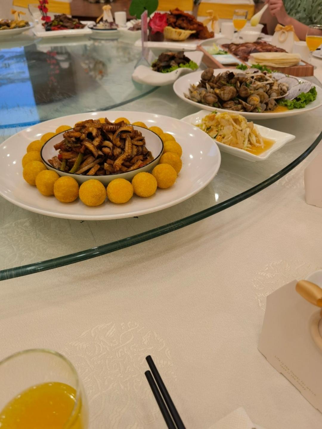 香芋地瓜丸。杏鲍菇鱿鱼,五香味的烤鸡。