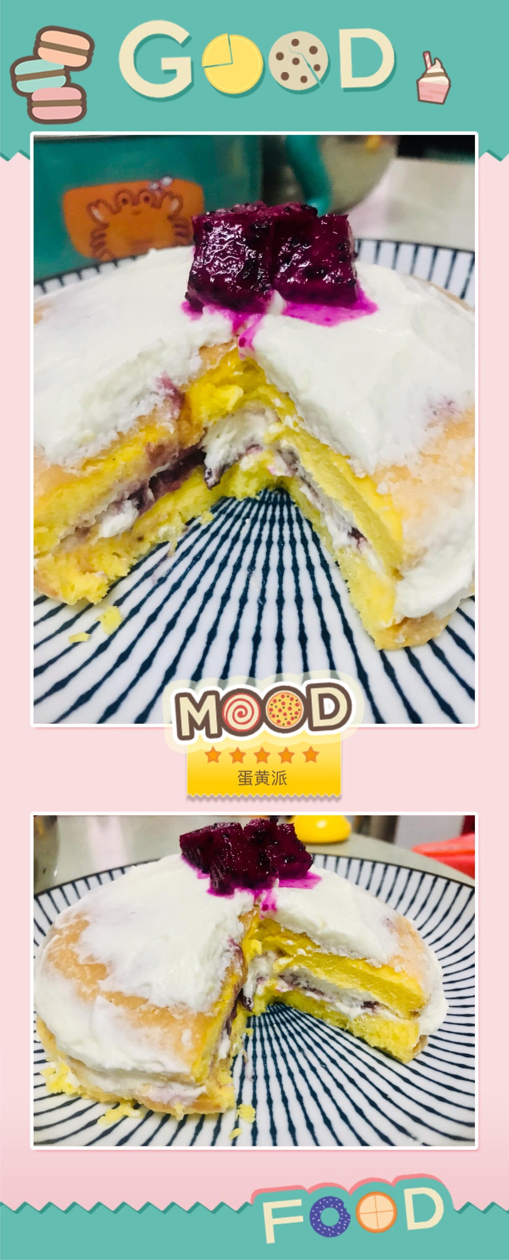 纯蛋黄做的,夹心蓝莓果酱+奶油