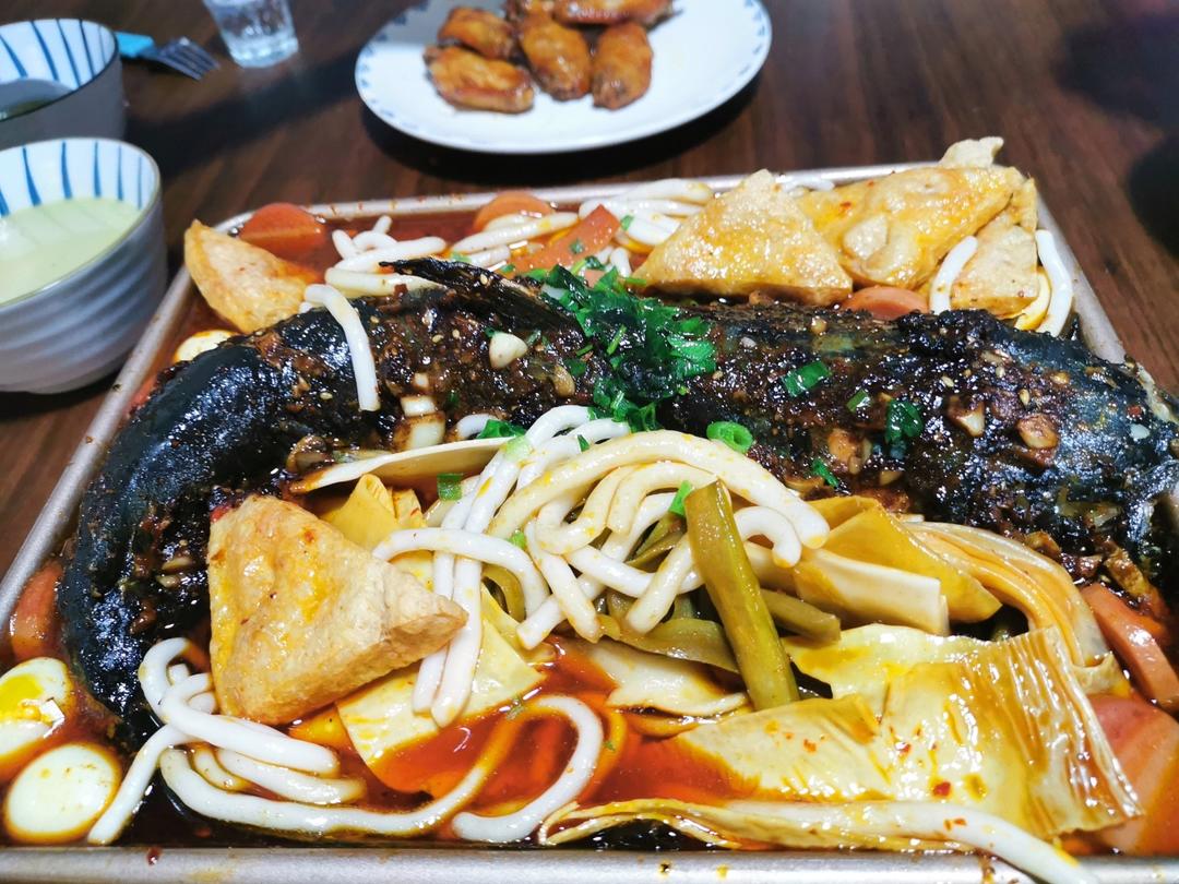 甜嘟儿嘛嘛 做过 午餐•2022年9月3日 烤鱼,江团好吃#午餐•2022年9月3日# 煎鱼豆瓣酱炒火锅料,加汤,220烤着蒜末烧烤料,热油一泼,加耗油生抽用刷子刷在鱼背上,继续烤 2022-09-03