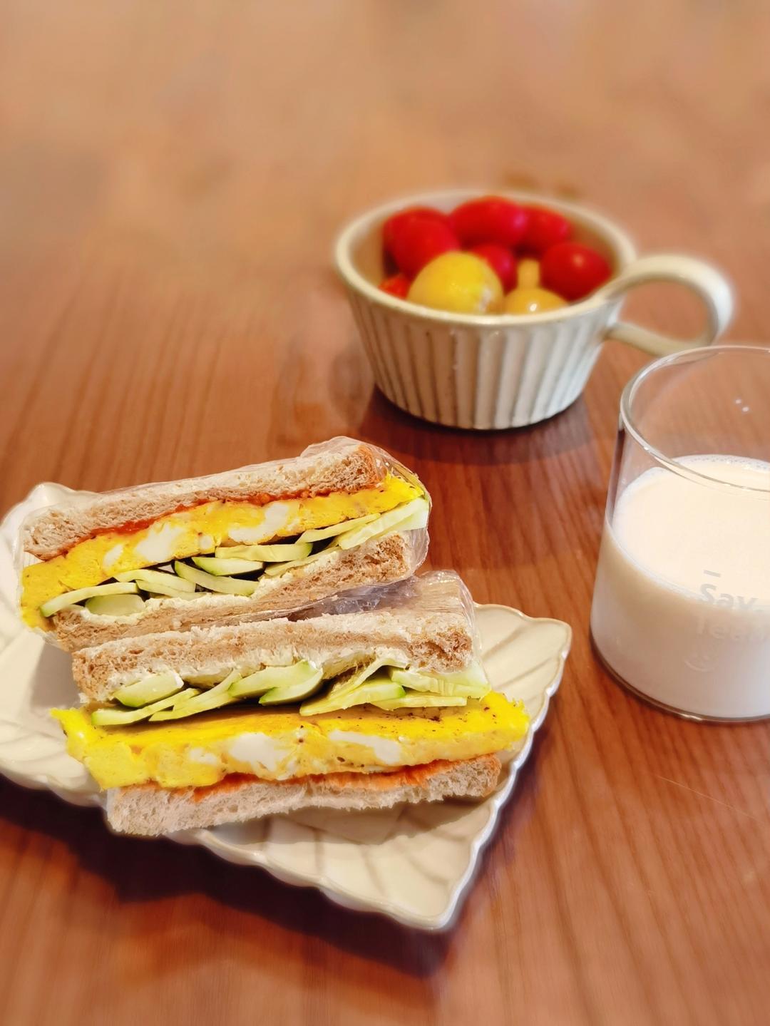 黄瓜鸡蛋全麦三明治 (马上就能结束不能吃溏心蛋的日子啦)( ̄▽ ̄)