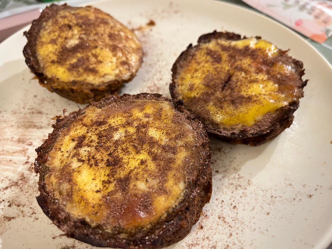 干吃不胖肥肉退散 做过 2022年09月09日 外表丑陋,吃着还行的燕麦红薯巧克力蛋挞。蛋挞皮是红薯混合燕麦麸皮。红薯蒸出来水份比较大不容易成团,一定要烤干。里面是巧克力流心蛋挞液,上面撒了一些可可粉。冷藏一下也好吃 2022-09-09