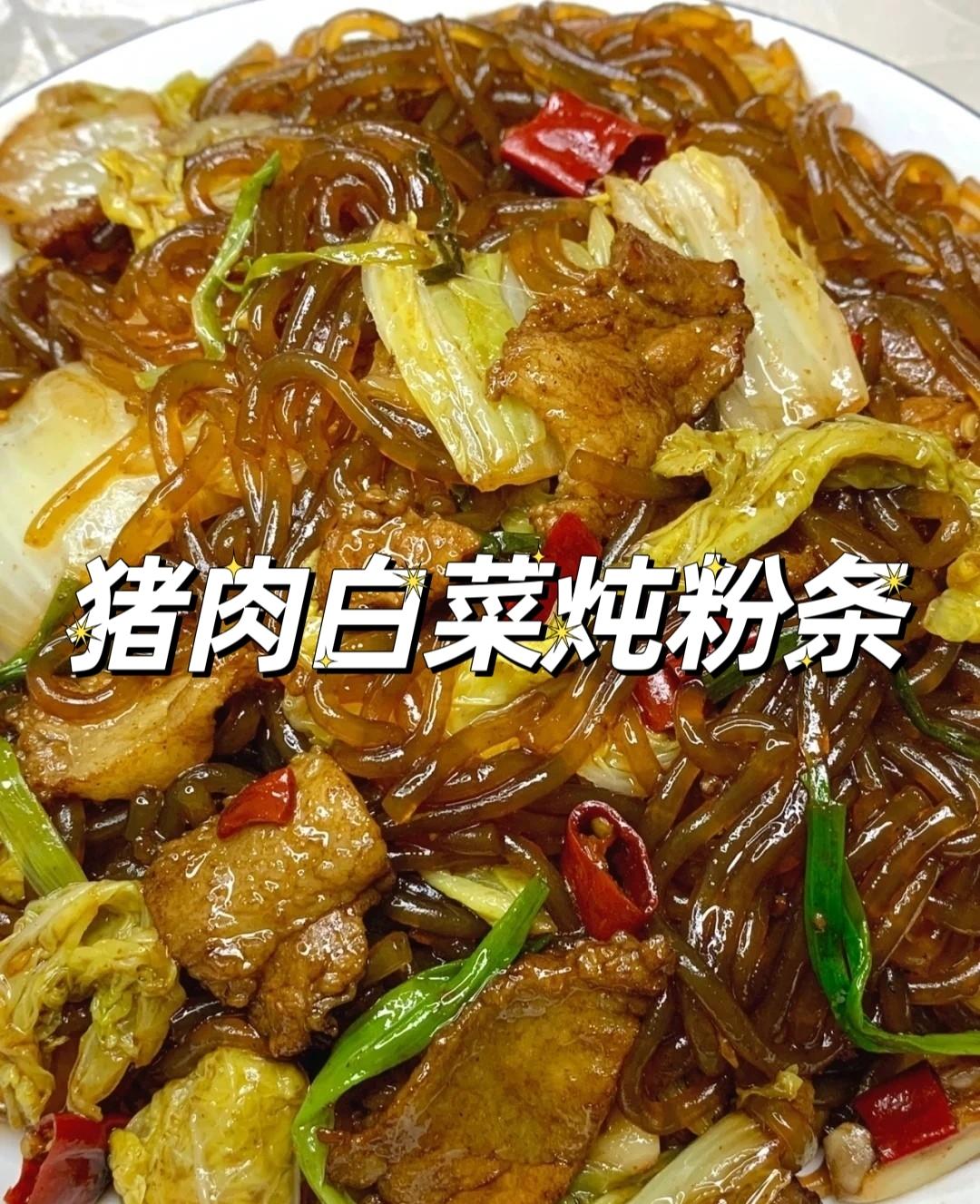 一颗小白菜,半条五花肉,一大把粉条(开水泡软)