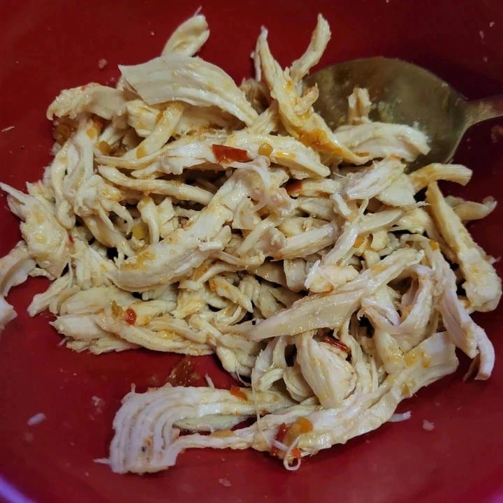 蔚蓝的猫 做过 鸡胸肉这样做巨好吃❗️凉拌鸡丝😋低脂高蛋白 #晚餐•2022年9月10日# 中秋节一人在家,一块不到的鸡胸肉,一勺蒜蓉辣酱,一点点剁椒辣酱,倒了点油醋汁,调料味精有点多满嘴大蒜味。。 2022-09-10