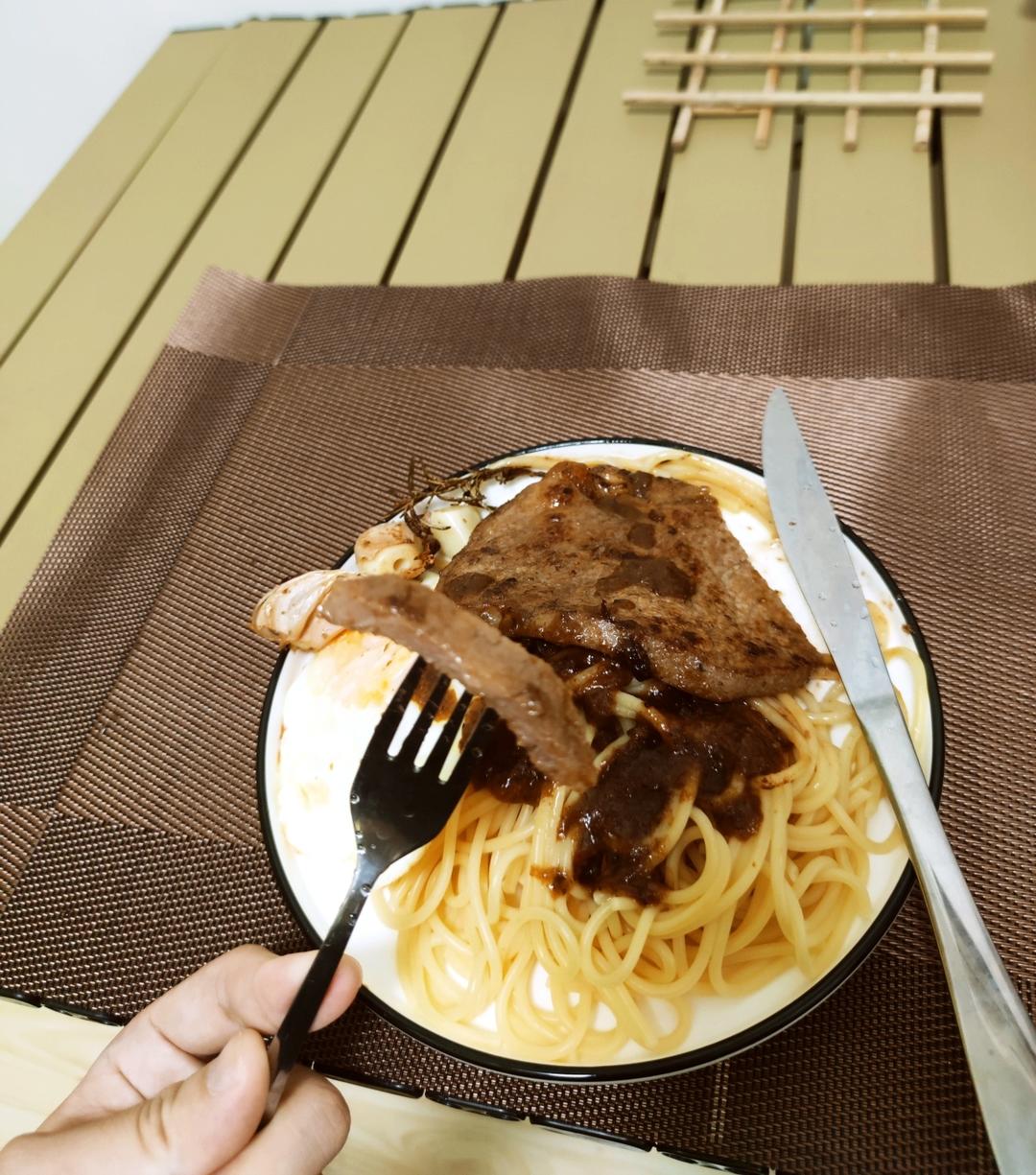 今天吃黑胡椒大地希冷,牛排盘子买小了,应该买10寸的,😁懒得用铸铁锅了,直接上不粘锅。