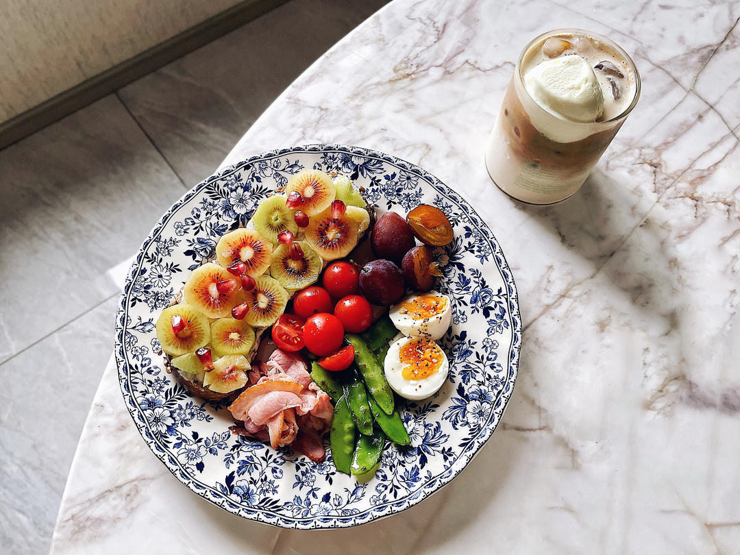 猕猴桃三明治🥝|培根🥓|鸡蛋🥚|荷兰豆|番茄🍅|西梅|墨尔本冰咖啡🍦