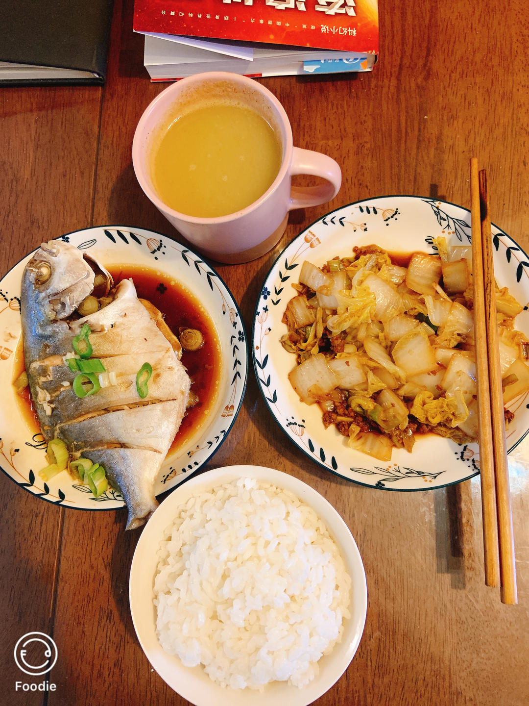 清蒸金鲳鱼、肉沫娃娃菜、猕猴桃🥝汁