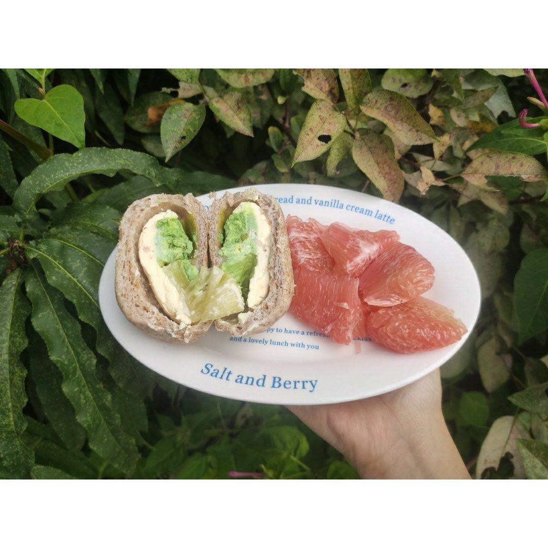 越宝酱 做过 早餐•2022年9月25日 #早餐•2022年9月25日# 2022年9月25日早餐开心果酱奶酪柠檬菠萝全麦软欧+红心柚+牛奶🍞来自【呼噶别朵小花】,内馅颜色搭配很漂亮,开心果酱奶酪层的开心果味被柠檬奶酪给抢了,整体吃起来都是柠檬的酸甜味,超大一块菠萝果肉很惊喜,时不时咀嚼到的开心果碎很加分~ 2022-09-25