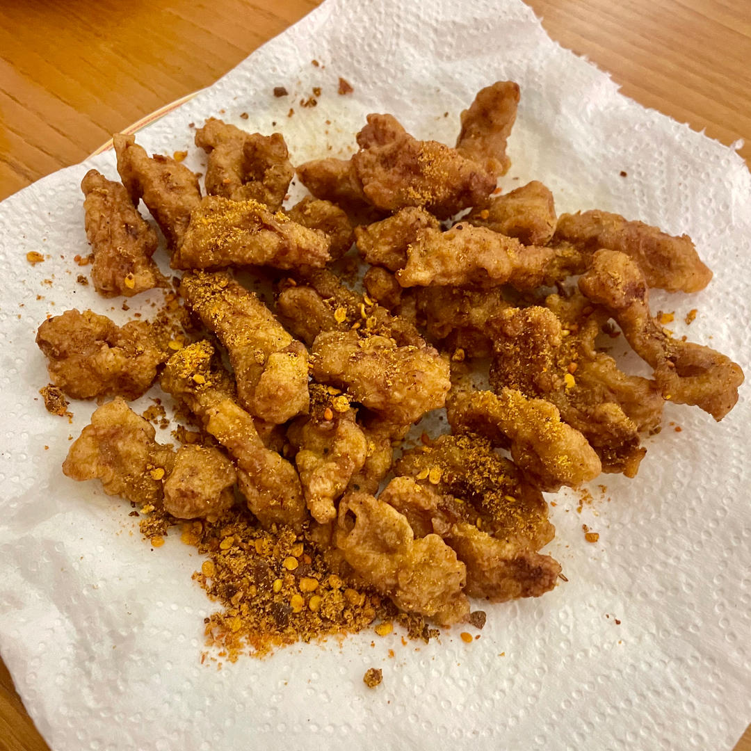 用猪脸肉做的小酥肉,外酥里嫩,加上六婆辣椒面,绝绝子~