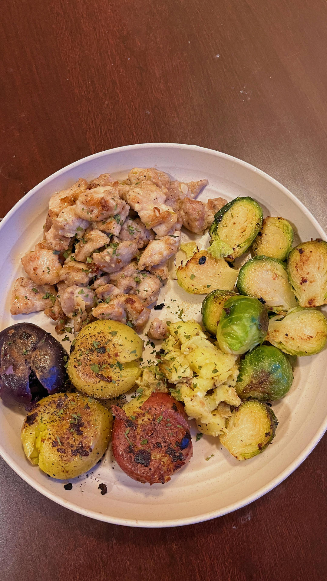 美乃滋柚子醋炒鸡腿肉和煎小土豆