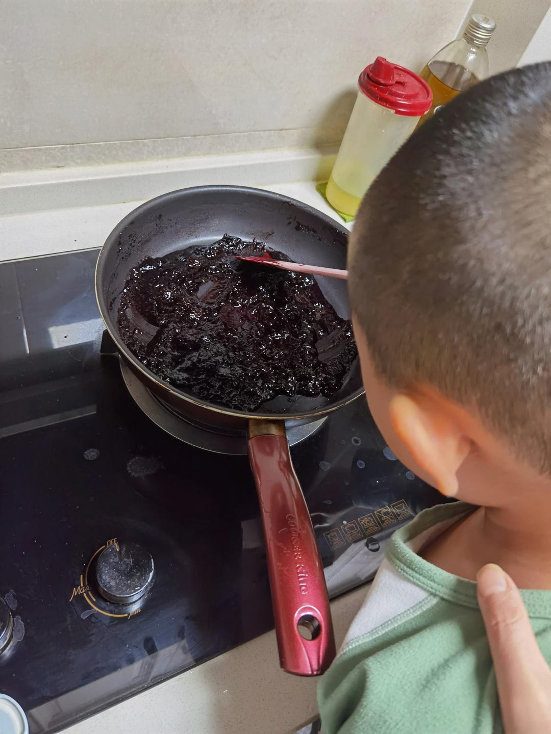 儿子学习熬蓝莓果酱