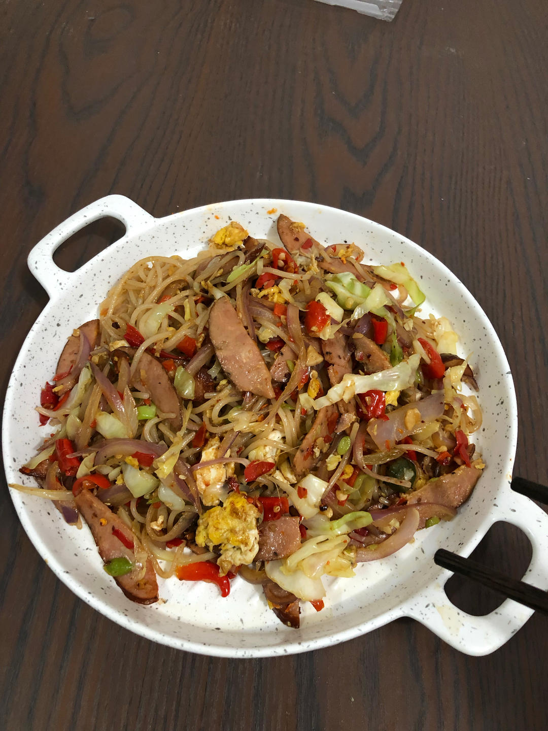 炒米粉 包菜洋葱鸡蛋和我爹的剁辣椒真好吃啊
