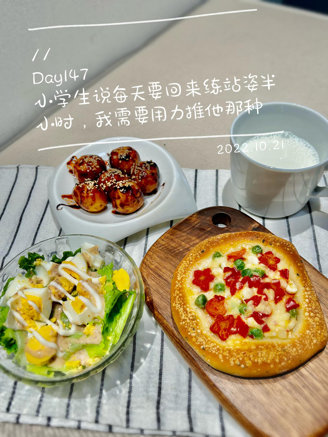 教瑜伽的馋猫 做过 早餐•2022年10月21日 #早餐•2022年10月21日# #和你一起成长一起造# 今天的照烧鱼丸很nice给爷爷奶奶留一个现在的你,有更多的关爱给家人了今日份🥣披萨&照烧鱼丸&沙拉&牛奶🥛 2022-10-21