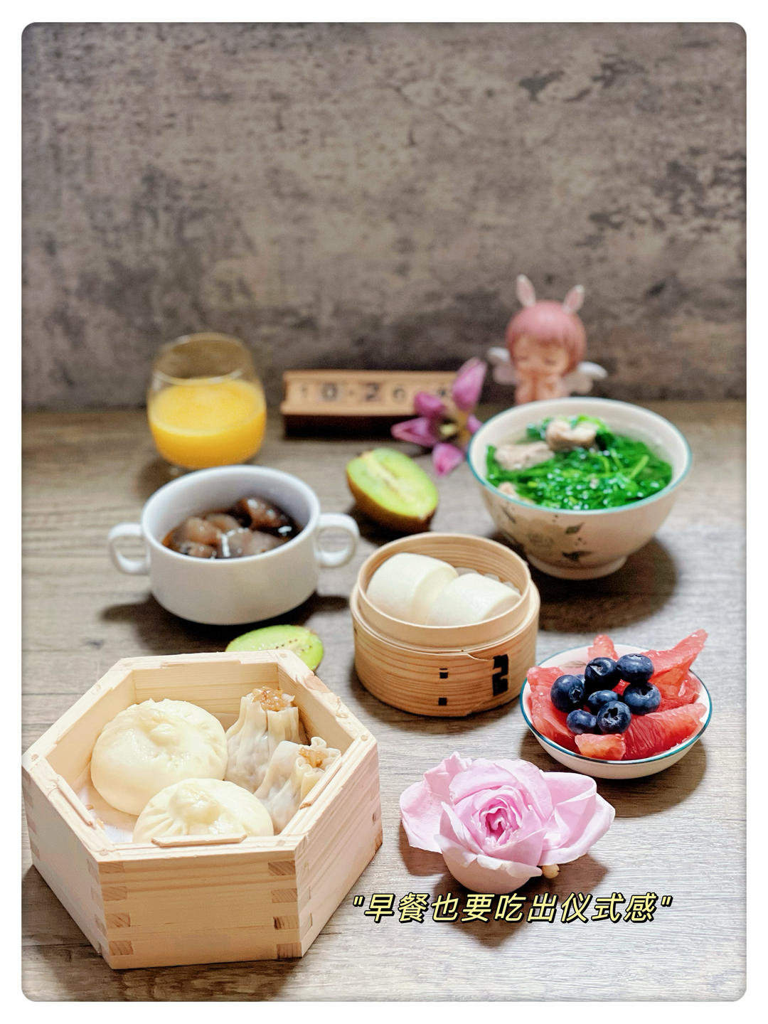 Gracejingjing 做过 早餐•2022年10月26日 #早餐•2022年10月26日# 早安!🌞今日份早餐:烧麦 小刀切 萝卜丝包豆苗排骨汤 海参柚子 猕猴桃🥝 蓝莓 橙汁 2022-10-26